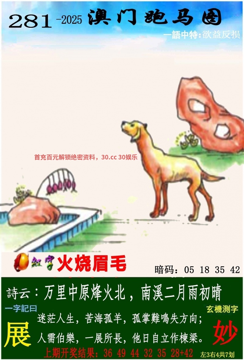 281期:九肖 | 鼠狗羊龙蛇鸡牛虎猴 | 羊47中 |